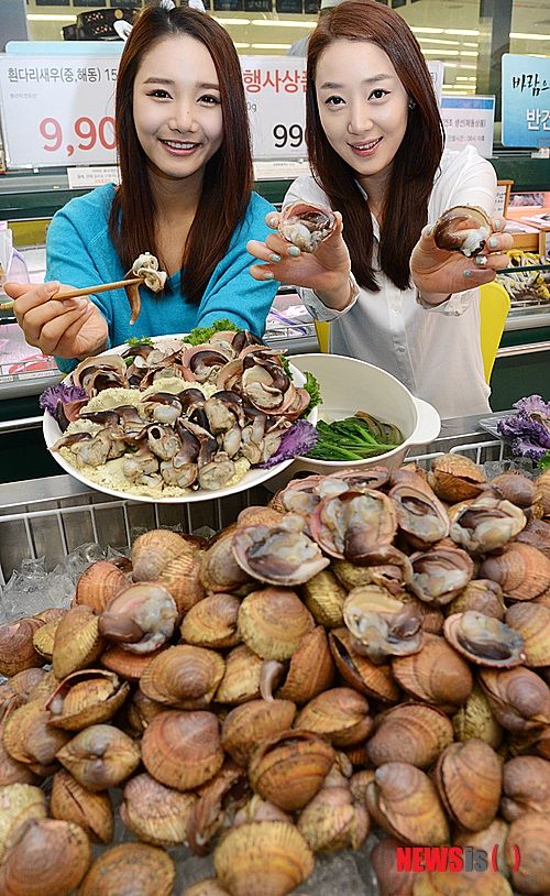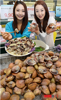 ソウル市内の大手スーパー「イーマート」竜山店で16日、天然トリガイが店頭に並んだ。
